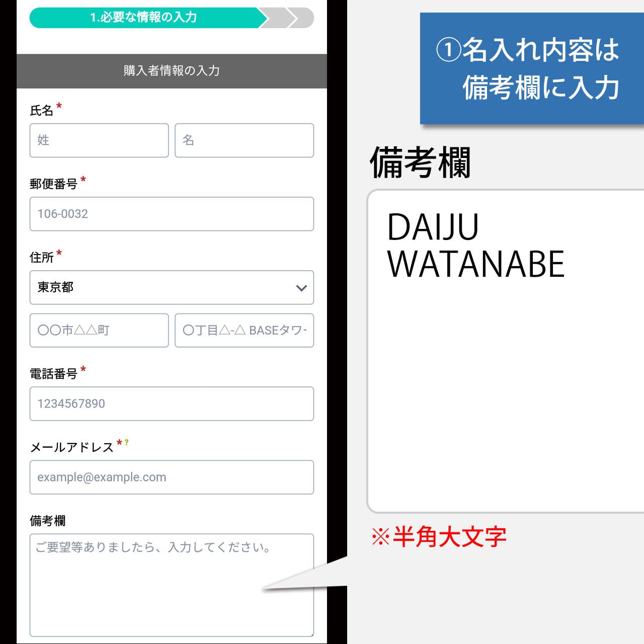 1)ご購入時の【備考欄】に入力